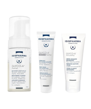 Dankzij het actieve ingrediënt glycolzuur, waarop deze set GLYCO-A®-producten gebaseerd zijn, ben jij zelf in staat om op een veilige en comfortabele manier een cosmetische peeling thuis uit te voeren! Met deze set heb je een complete skincare routine.